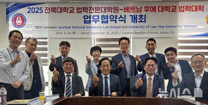 [전주=뉴시스] 윤난슬 기자 = 전북대학교 법학전문대학원은 지난달 30일 베트남 국립 거점대학인 후에대학교 법학대학과 학술 및 교육 연구 협력을 위한 업무협약을 체결했다고 1일 밝혔다.